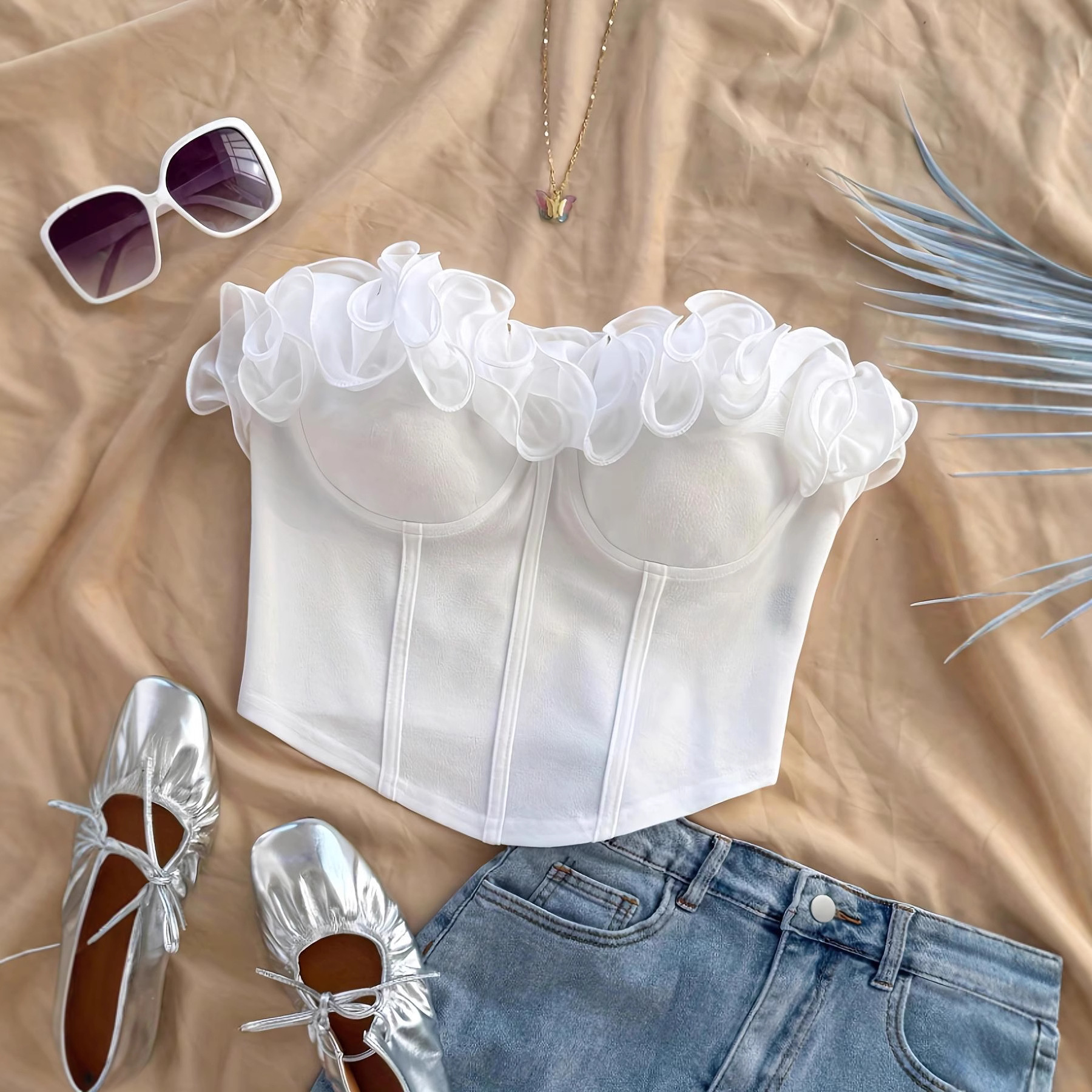 实拍现货2025优雅气质立体花朵纯欲抹胸背心外穿内搭修身辣妹上衣