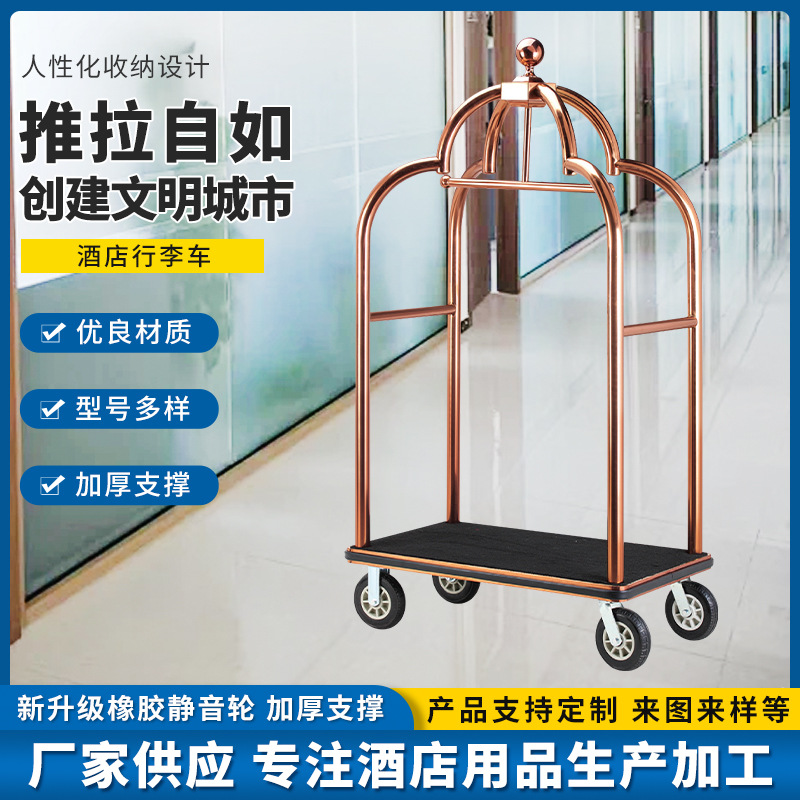 新款酒店送衣服车加厚礼宾推车散客箱包静音轮子不锈钢行李平板车