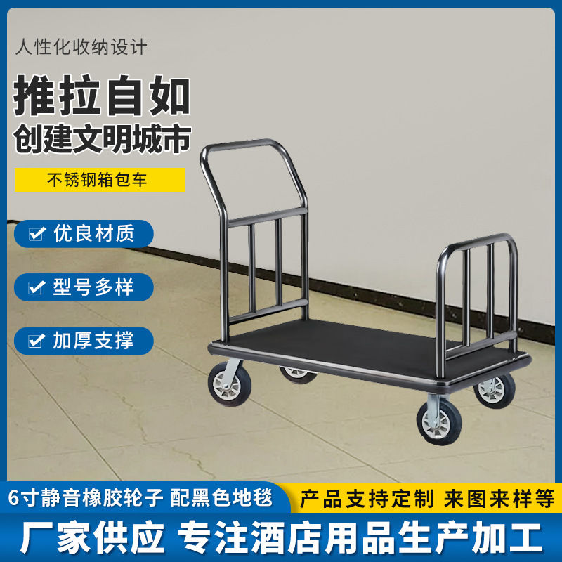 酒店行李车迎宾大堂推车宾馆箱包不锈钢平板车机场拖车箱包车批发
