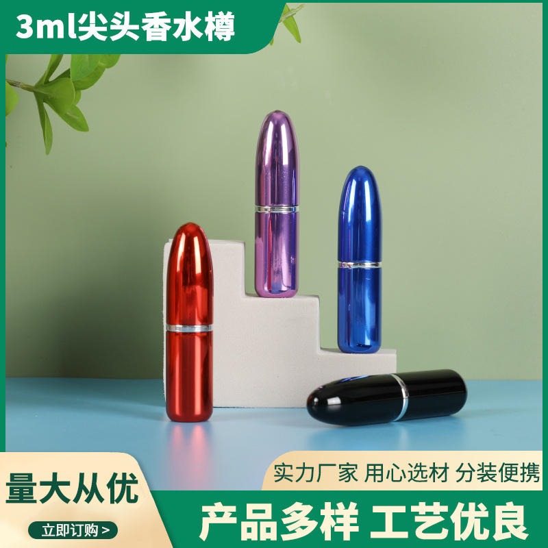 3ml尖头香水瓶香水分装瓶玻璃喷雾瓶铝制亮面便携式化妆品分装瓶