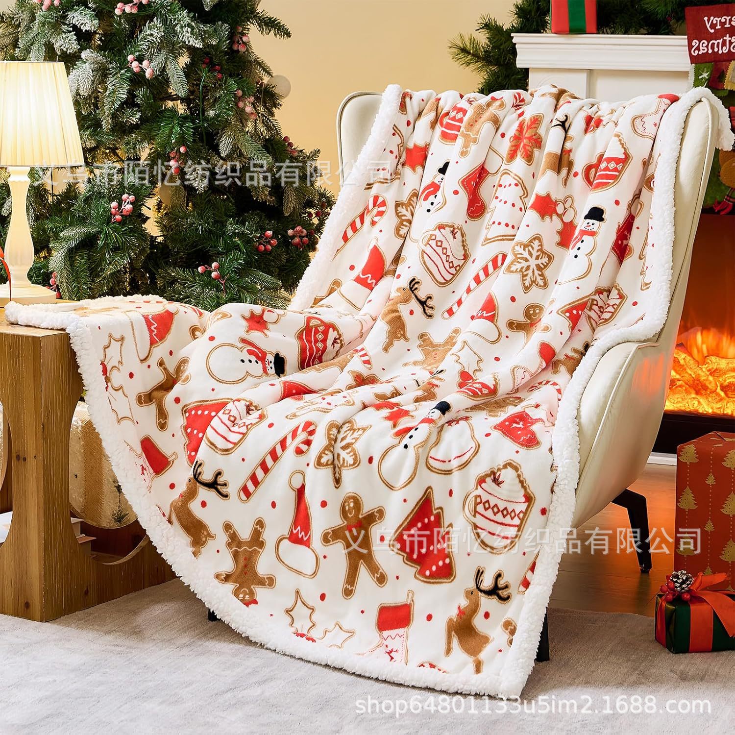 跨境圣诞节新款姜饼人法兰绒羊羔绒柔软保暖冬季午睡盖毯送礼佳