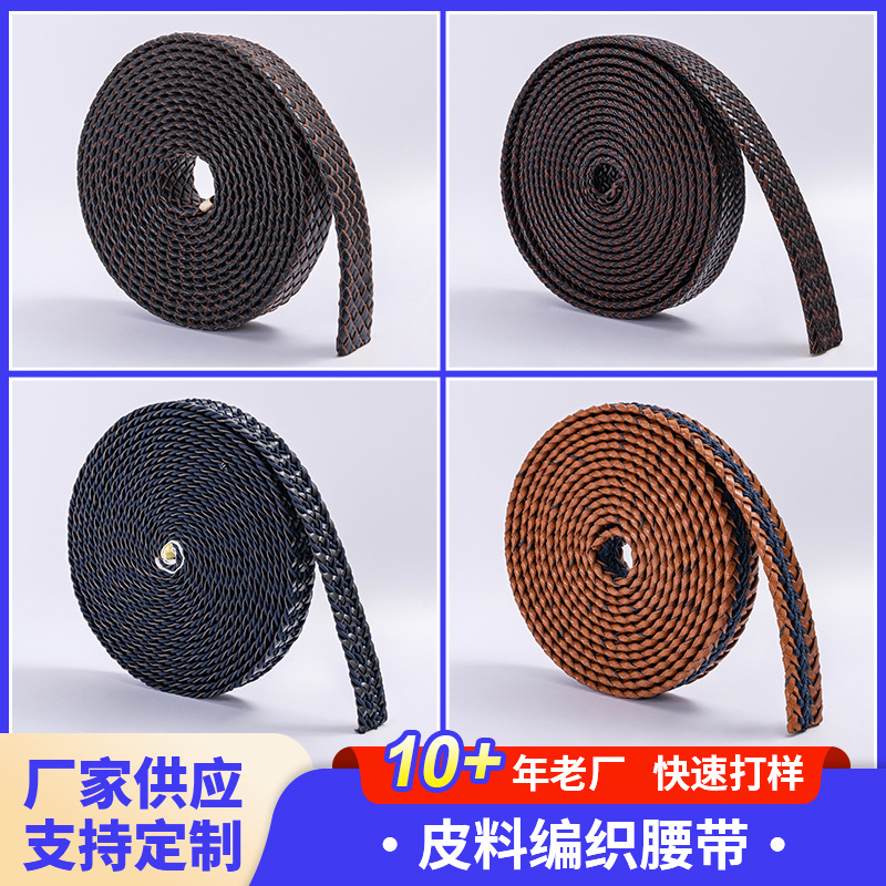 皮料编织腰带宽松紧带免打孔装饰皮带半成品无弹性皮革加工