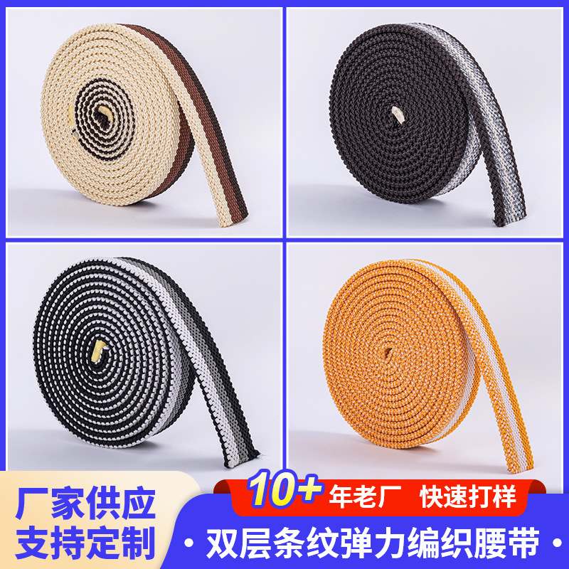 双层条纹弹力编织腰带松紧腰带有弹力裤带松紧腰带免打孔编织带