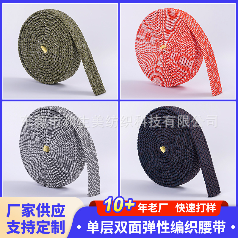 单层双面弹性编织腰带双色编织松紧腰带休闲男士免打孔弹力松紧带