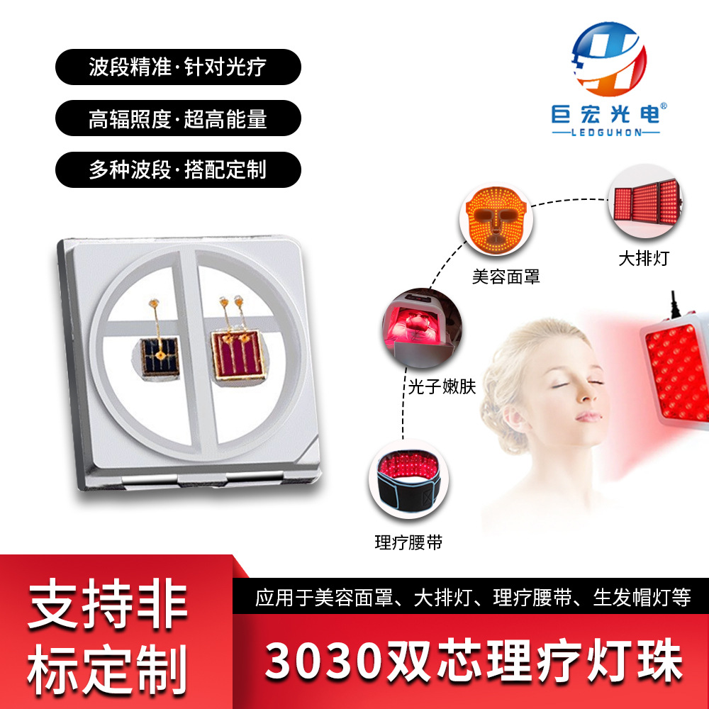 3030双芯红光红外双色led理疗灯珠 660+850nm医疗美容面罩灯珠