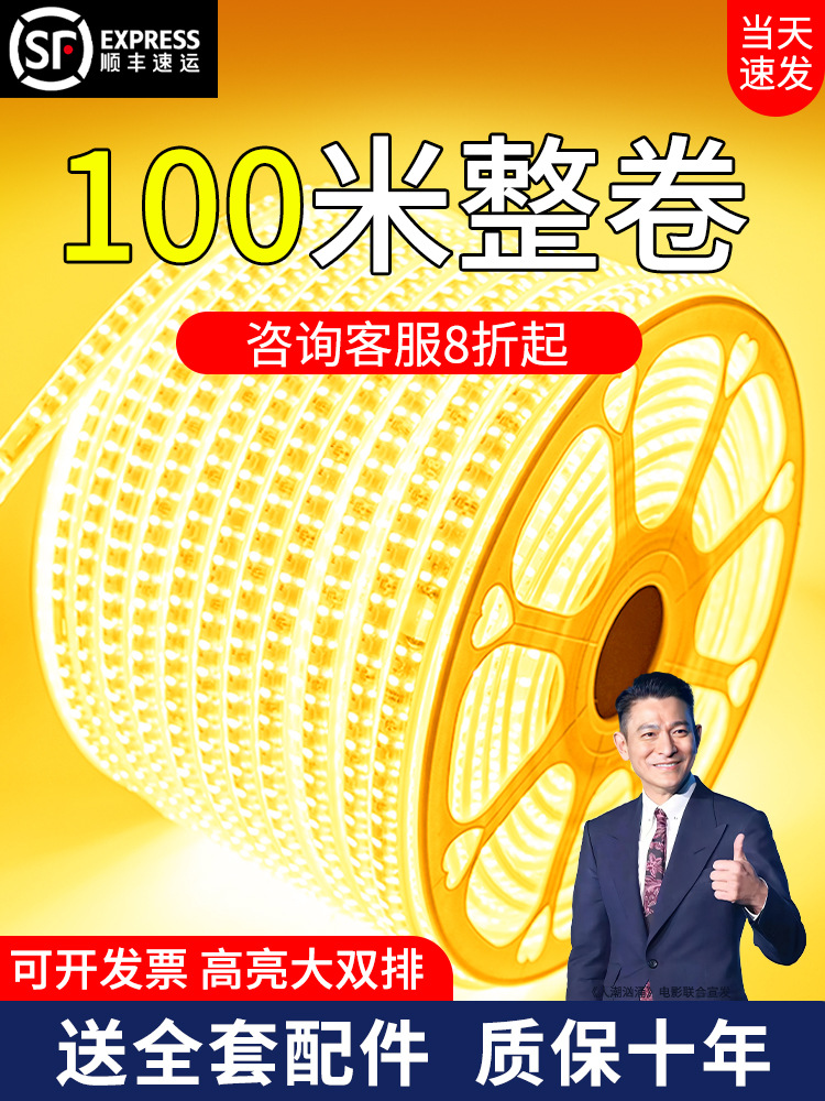 灯带led灯条超亮户外防水工程氛围灯室外暖光220v客厅吊顶灯带条