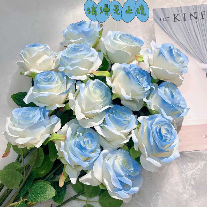 ins假玫瑰花仿真花束摆件插花拍照高颜值diy礼物碎冰蓝客厅装饰