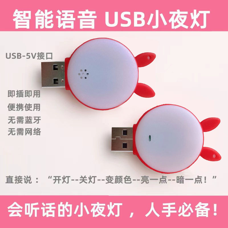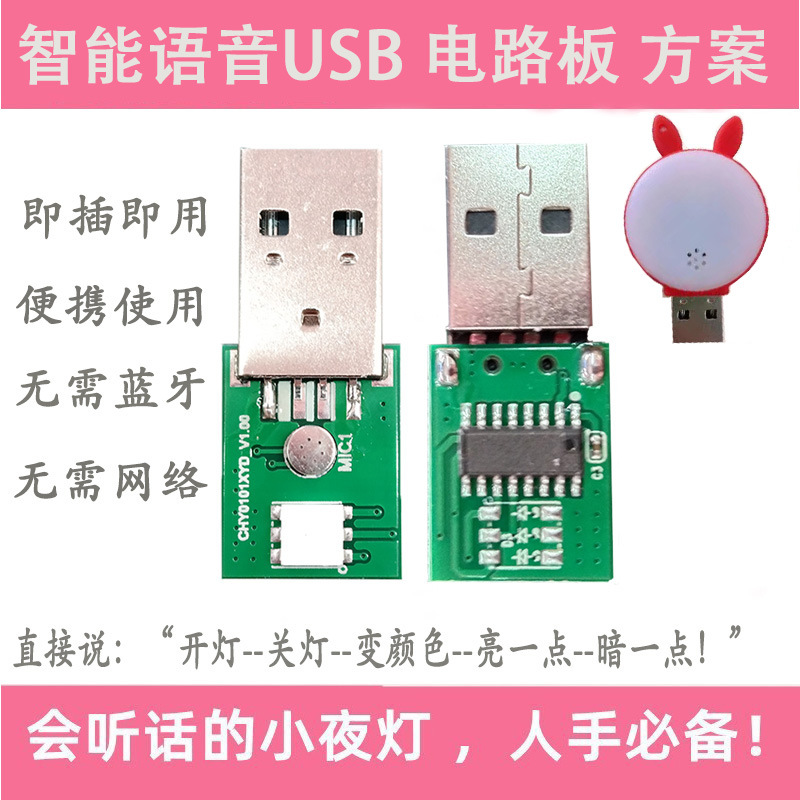 LED灯人工智能语音控制小夜灯电路板 USB灯声控灯PCBA控制板 AI