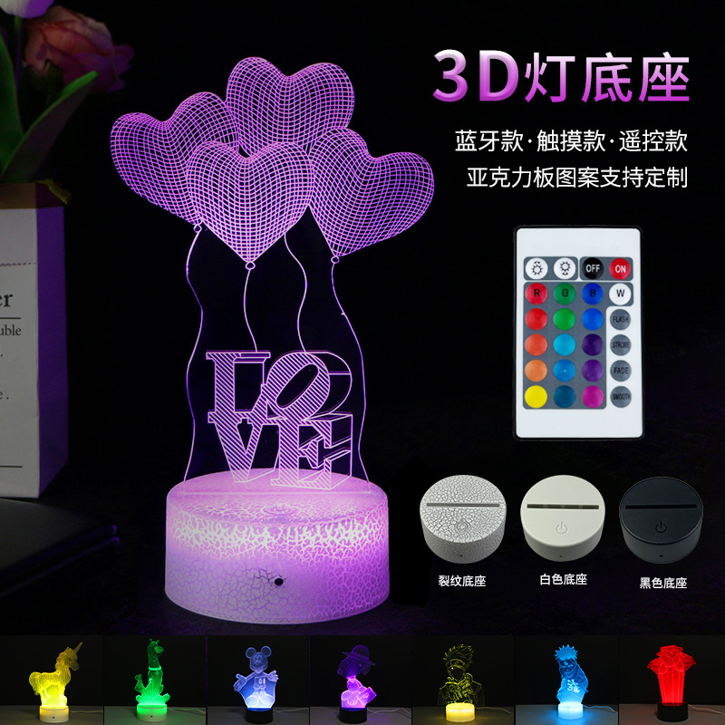 定制七彩触摸亚克力3D小夜灯遥控床头灯灯底座diy台灯底座灯串厂