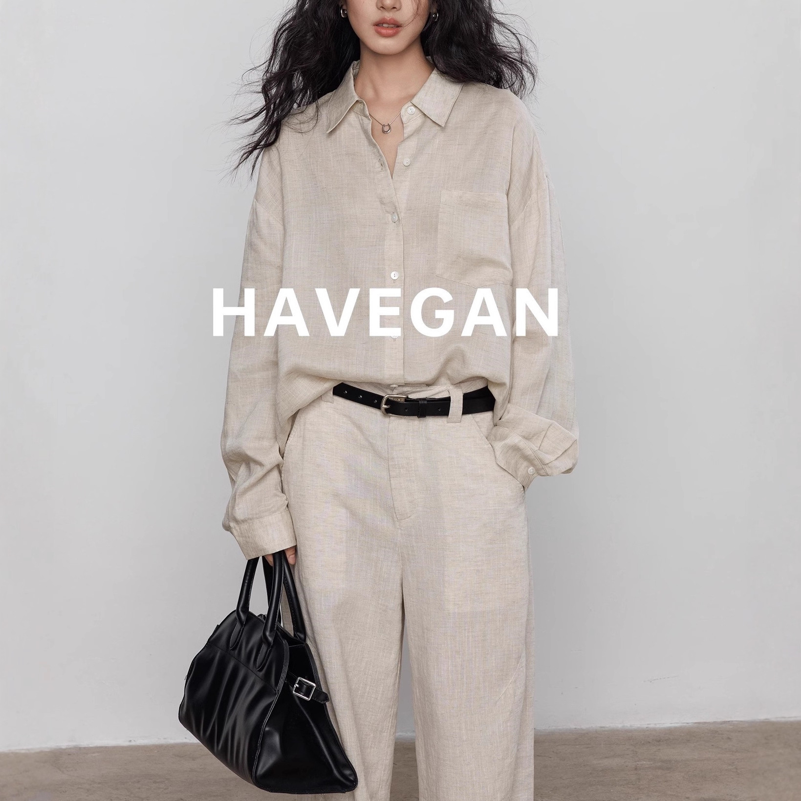亚麻宽松长袖衬衫女慵懒老钱风2025新款上衣