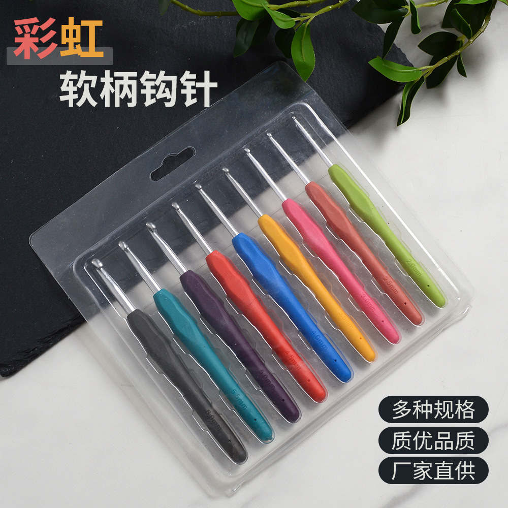 TPR软柄钩针单头铝毛衣针便携彩色多品种套装工具用品厂家批发