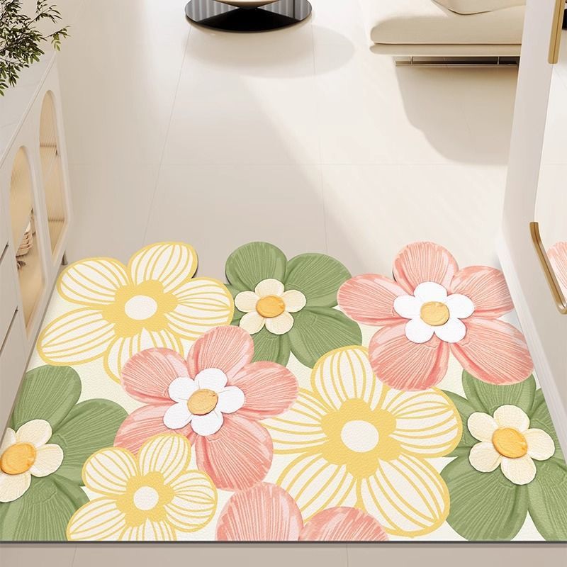 入户门硅藻泥地垫花卉吸水防滑地垫家用速干脚垫客厅耐脏耐磨垫