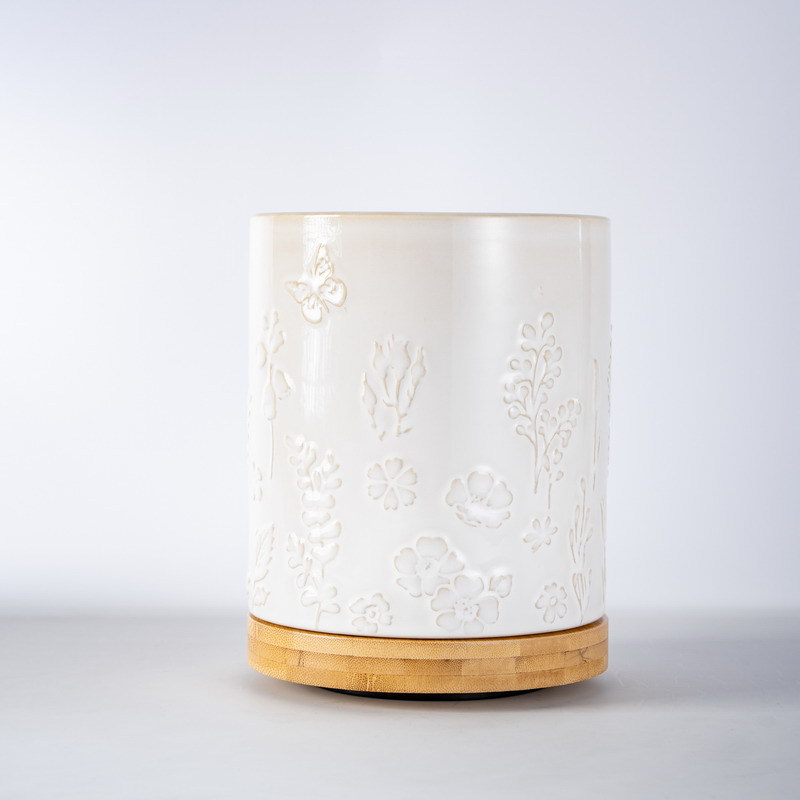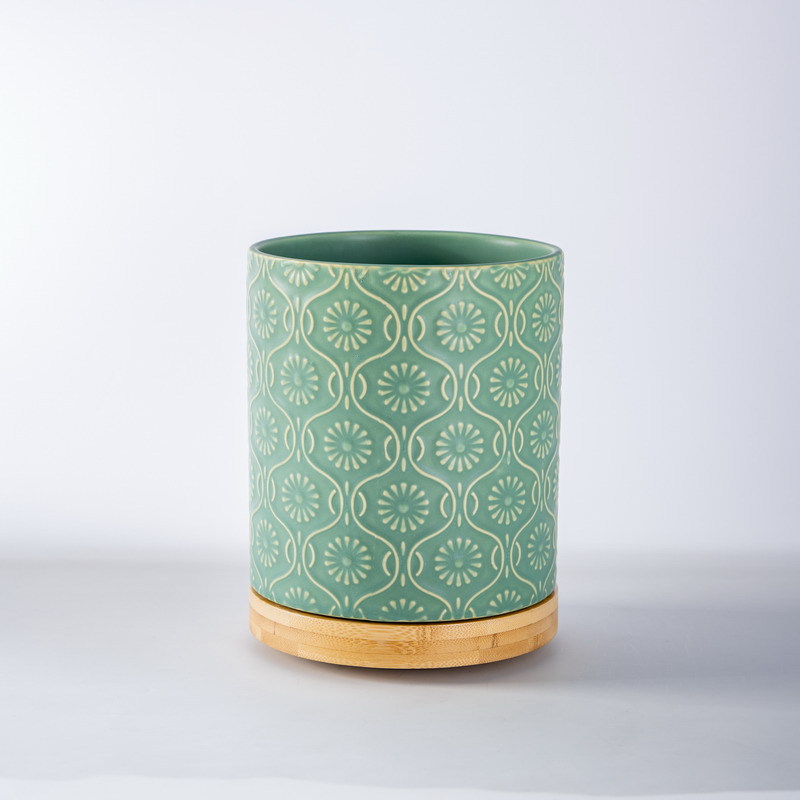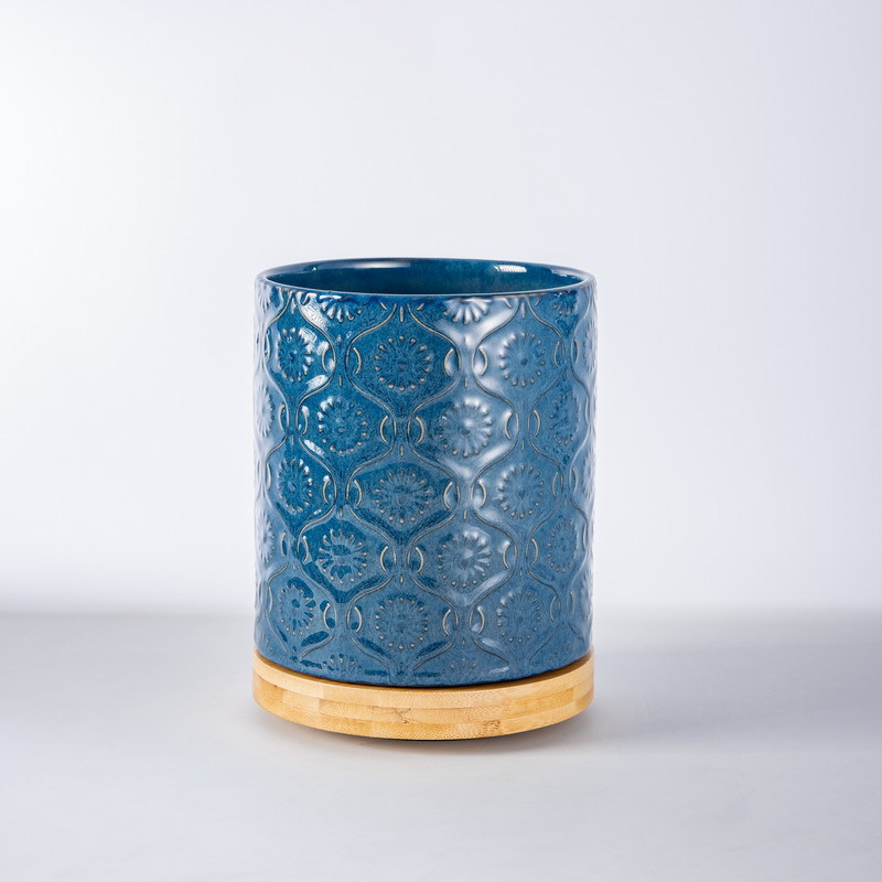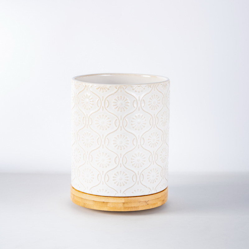 北欧复古多功能厨房餐具收纳桶 可旋转浮雕陶瓷收纳筒窑变陶瓷桶