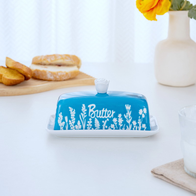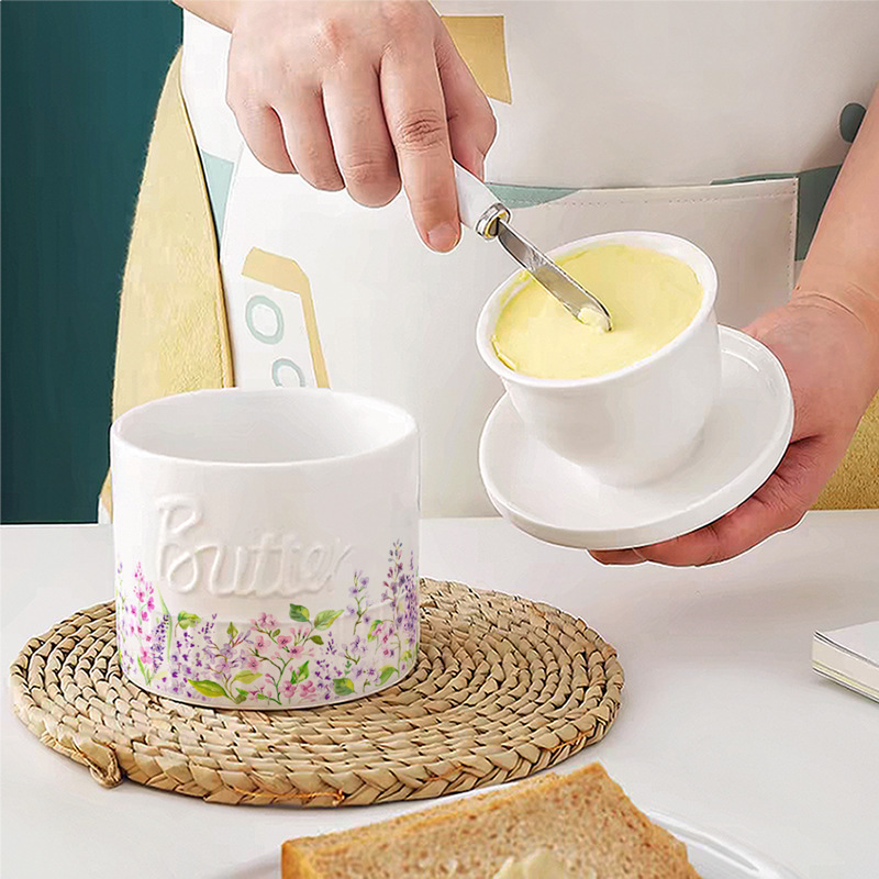 新品跨境丁香花清新陶瓷黄油盅奶酪储存罐带盖家用餐厅牛油盅