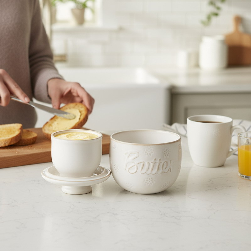 跨境洒墨刻花仿古陶瓷黄油盅 家用餐厅大号黄油储存罐亚马逊热卖