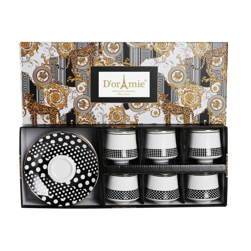 北欧风简约黑白波点千鸟格纹金边浓缩咖啡杯碟陶瓷杯六件套礼盒装