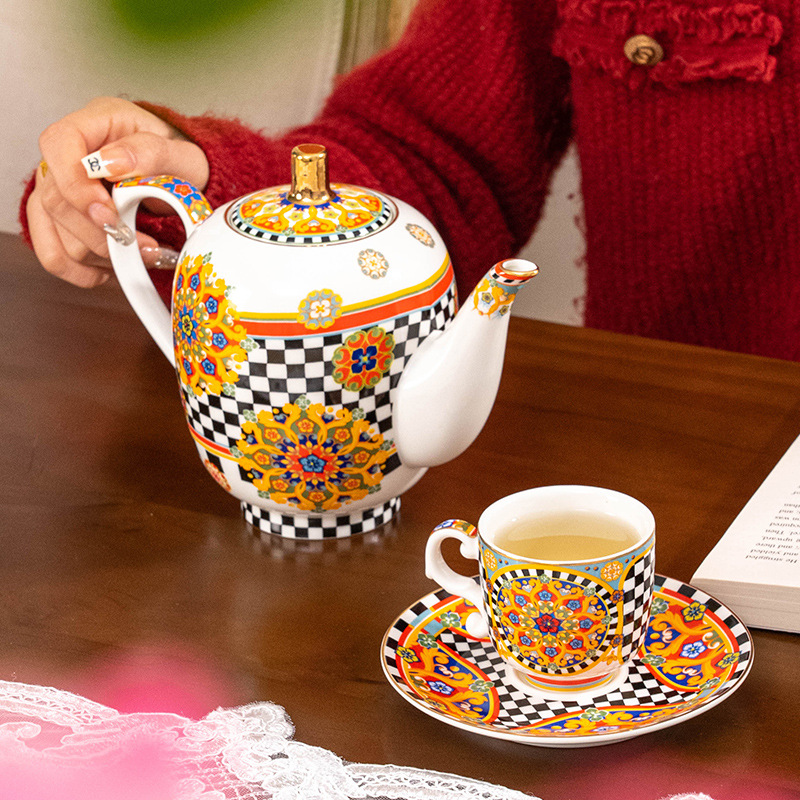 复古异域风意式浓缩杯碟套装陶瓷茶壶六杯碟下午茶组合咖啡杯送礼