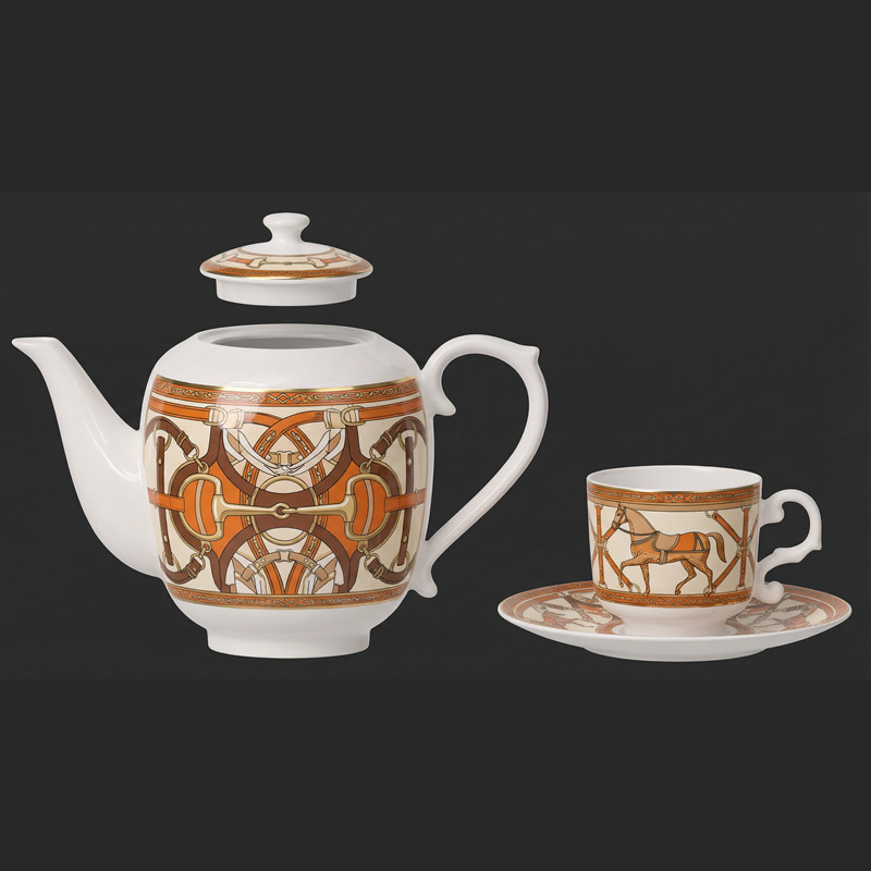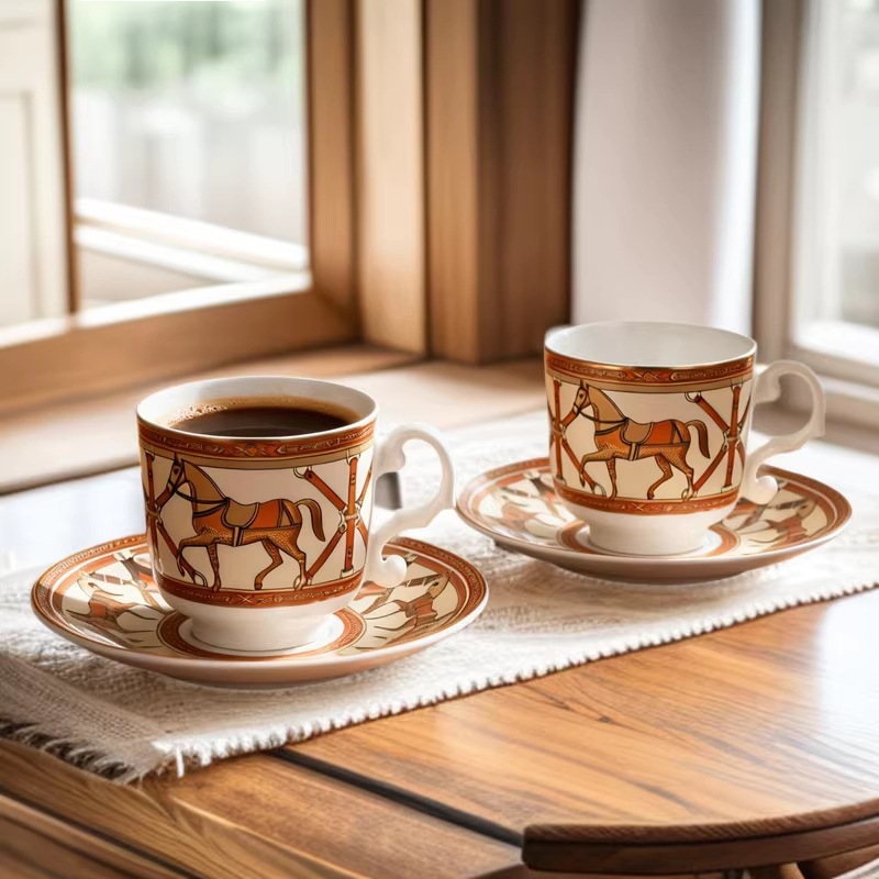 轻奢复古骏马意式浓缩咖啡杯碟小杯六件套陶瓷茶壶茶具下午茶套装