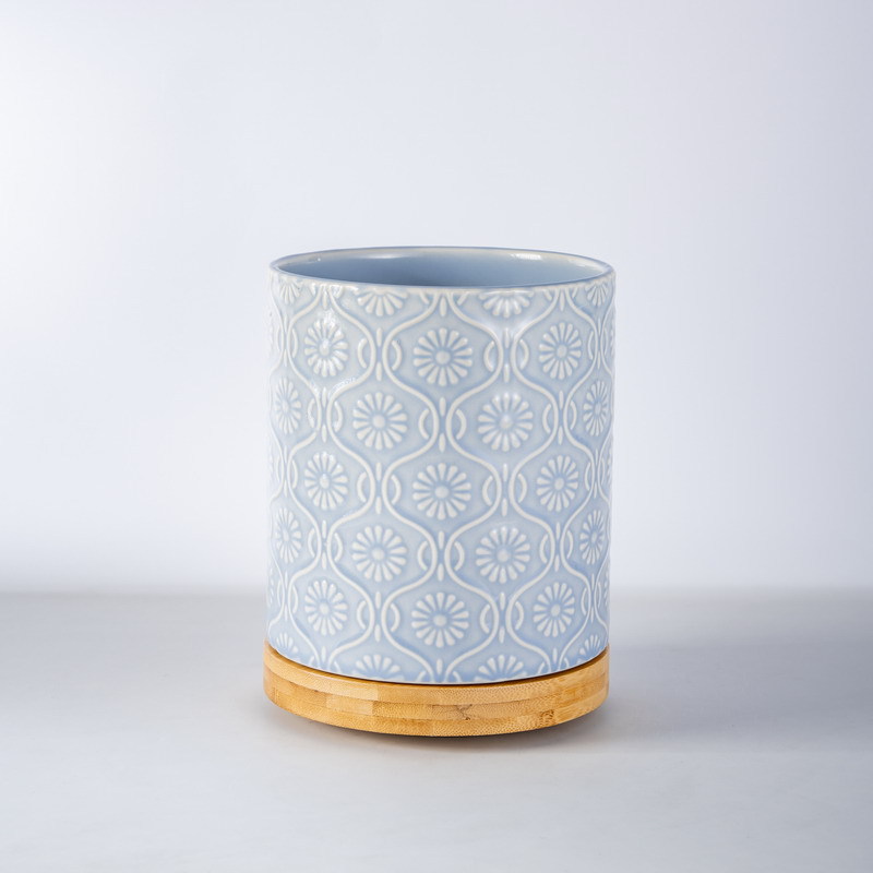 跨境亚马逊秘密花园浮雕窑变色釉多功能收纳陶瓷罐旋转工具桶套装