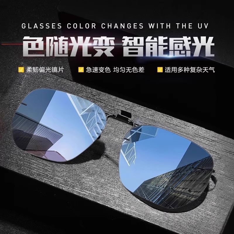 偏光墨镜变色夹片防紫外线近视钓鱼驾驶眼镜夹片式太阳镜开车专用