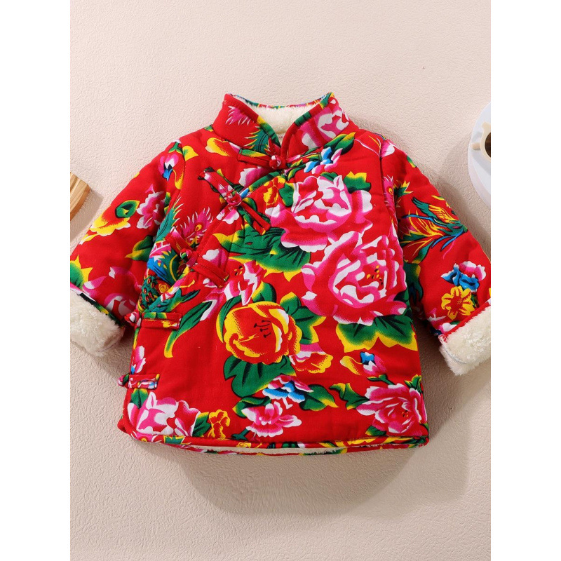 儿童中国风偏襟棉袄宝宝复古加绒加厚棉衣女童民族风喜庆拜年服