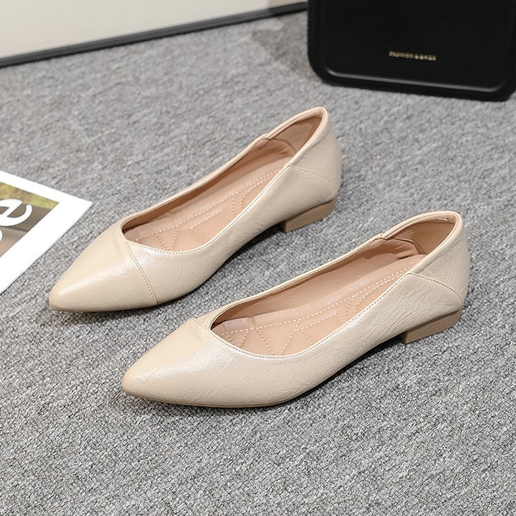 低跟单鞋女2026年春秋新款法式裸色高跟鞋尖头舒适工作鞋