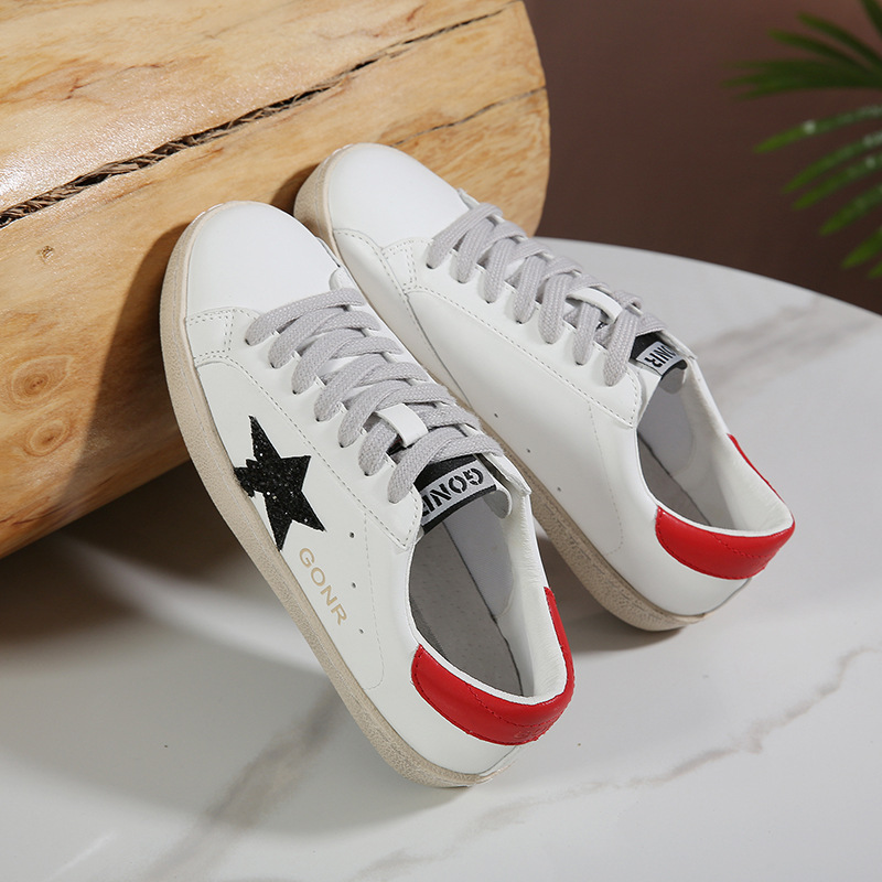 真皮亮片脏脏鞋星星鞋小脏鞋复古板鞋女2024新款春季小白鞋情侣鞋