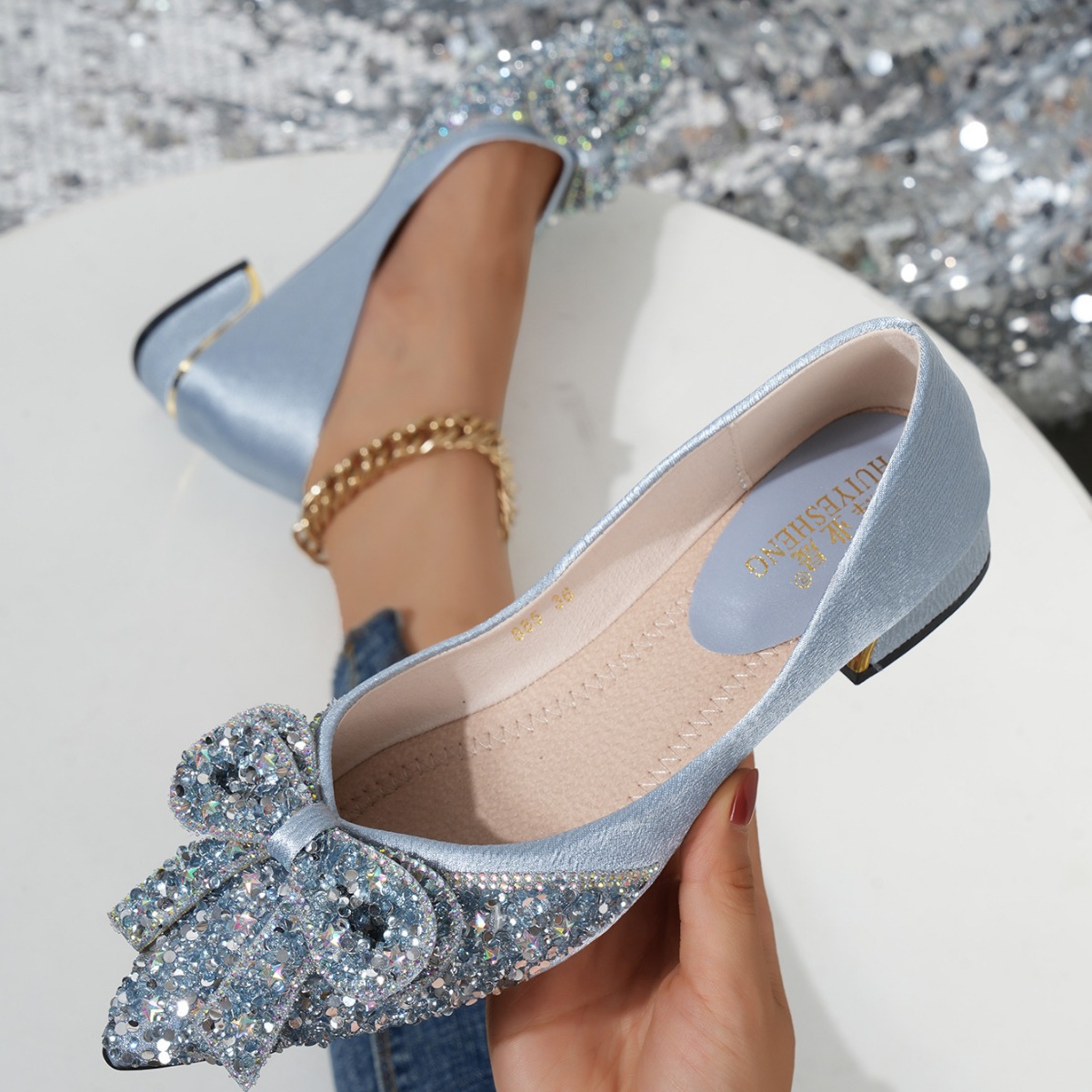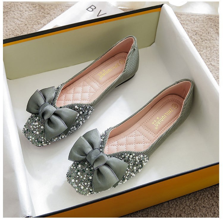 2026年跨境平底单鞋女软底水钻豆豆鞋伴娘鞋婚鞋大码孕妇女鞋春秋