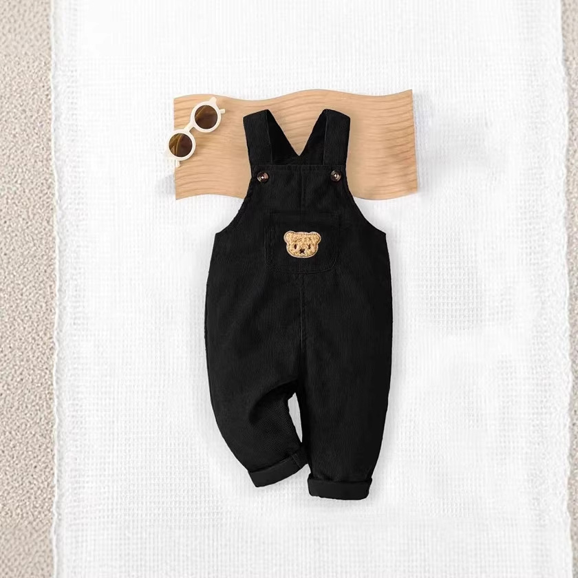 秋冬款儿童灯芯绒背带裤 卡通小熊男童女童百搭背带裤 宝宝潮裤