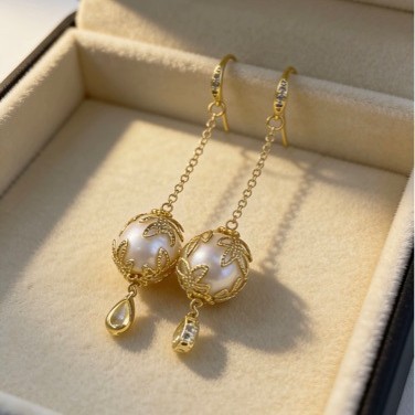 天然淡水珍珠耳环耳钉耳钩气质百搭女简约轻奢仙女风树叶耳饰批发