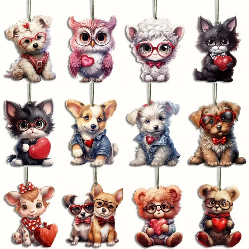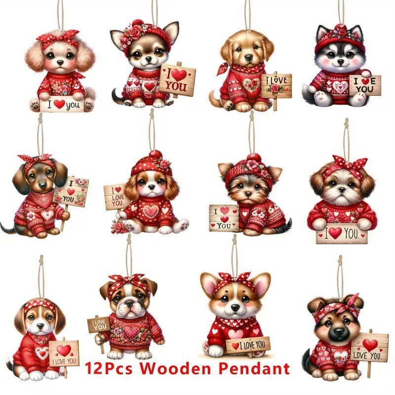 跨境新品24件情人节可爱小狗主题家居装饰品 节日派对木质装饰品