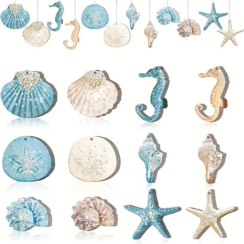 36件跨境新品夏季海洋风格木质挂件饰品海洋沙滩派对氛围木质挂饰