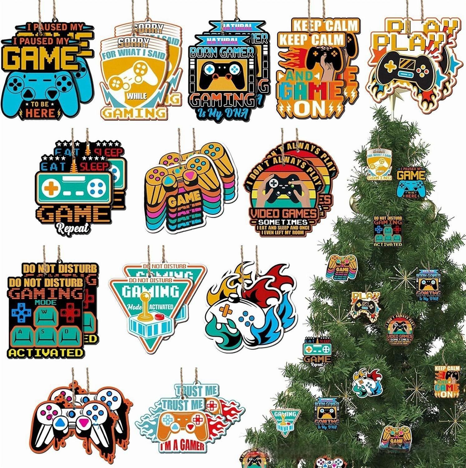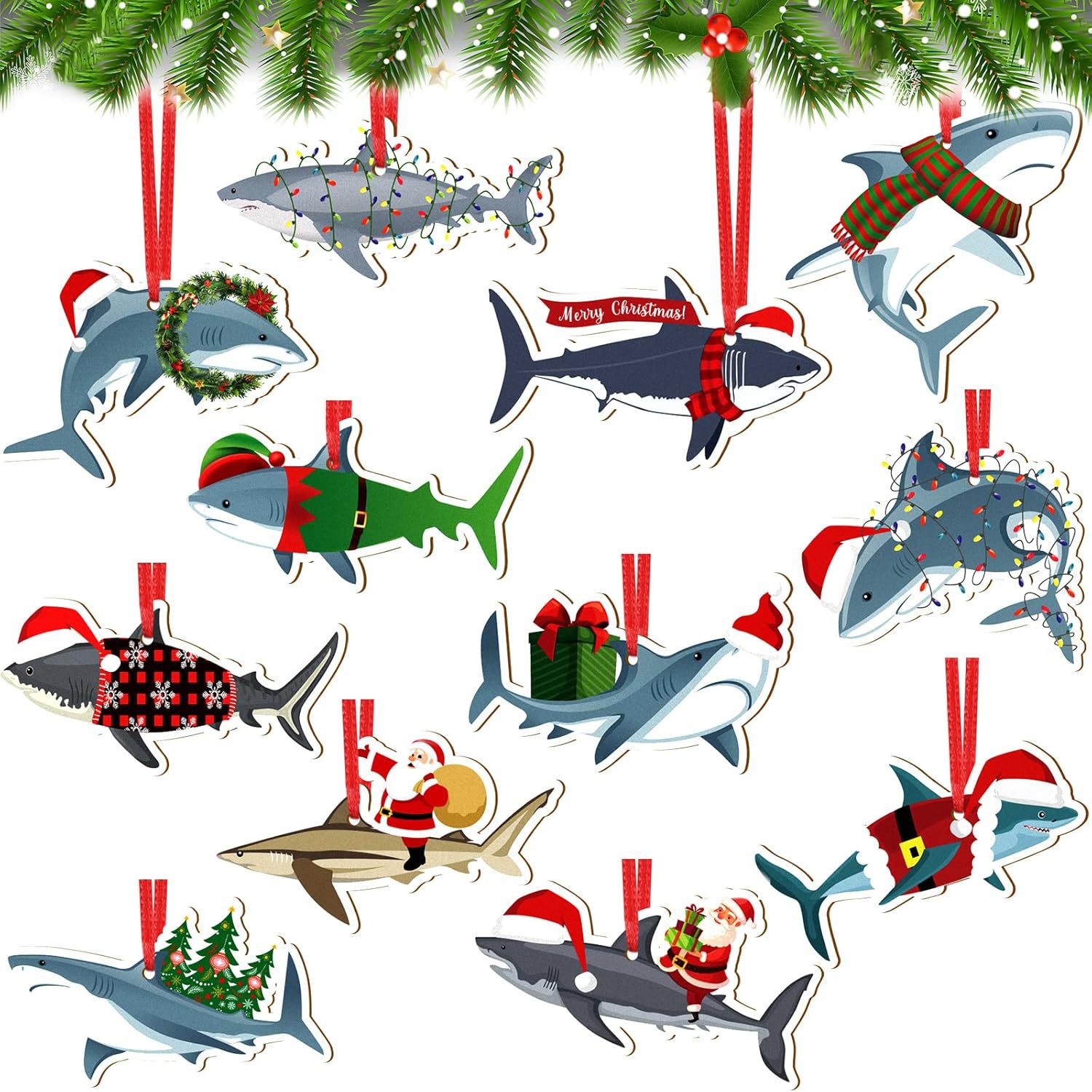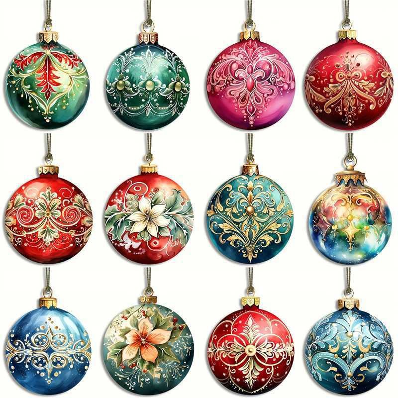 新款12件彩色 2D 平面雪球图案装饰品木制悬挂装饰品适合节日礼物