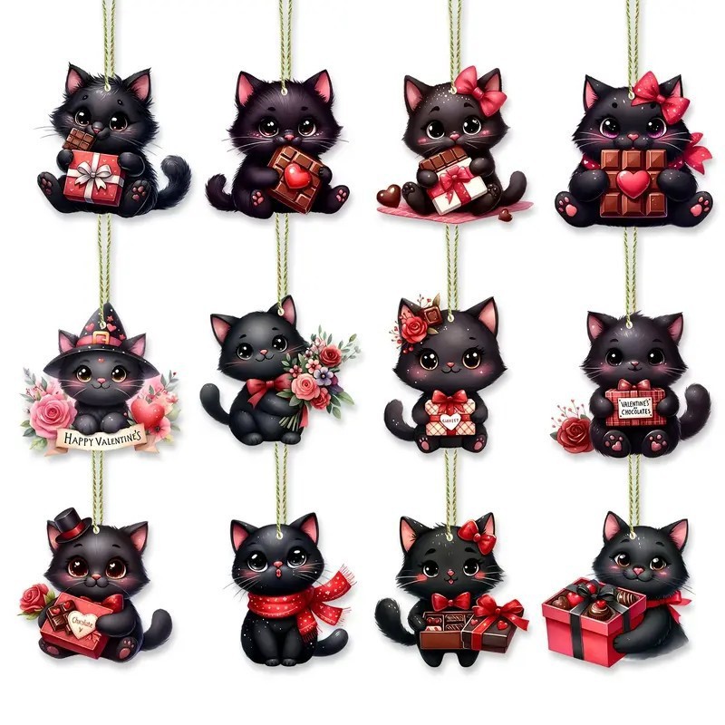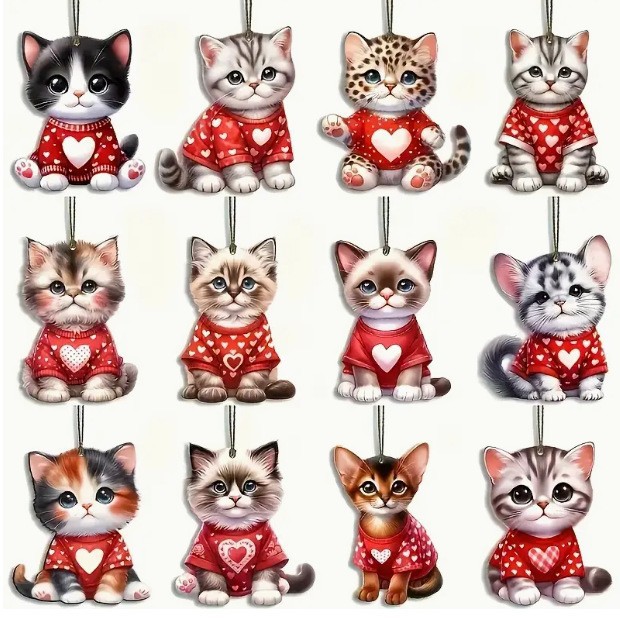 跨境新品情人节36件创意可爱小猫暖心家居木质装饰 节日派对挂饰