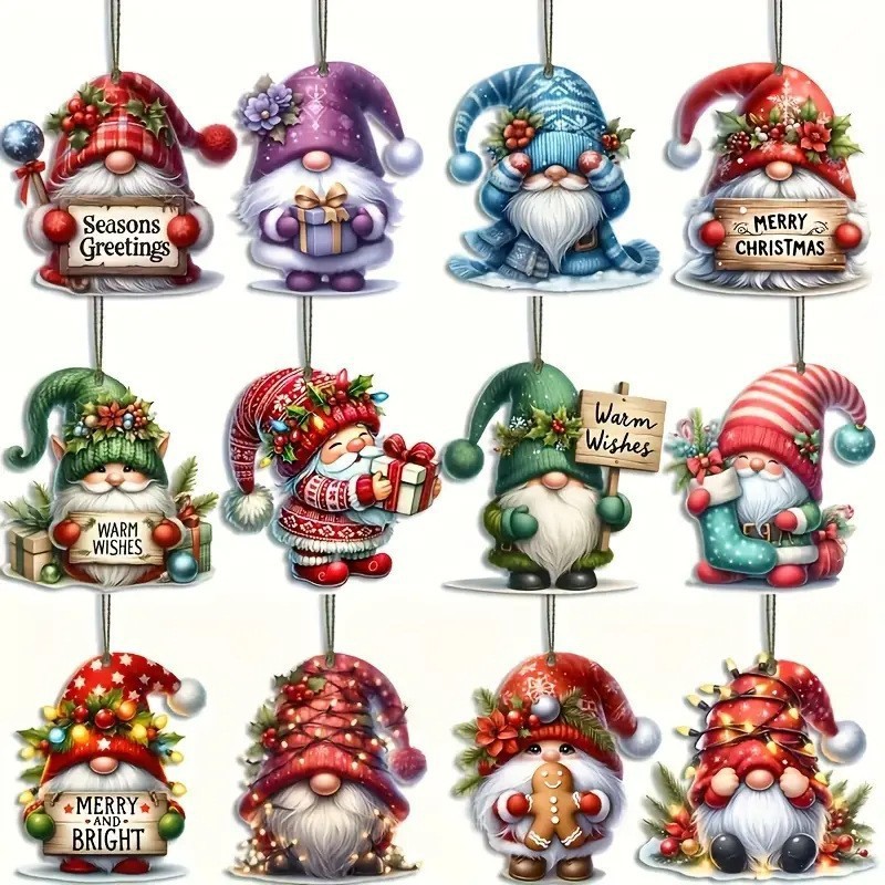 12件圣诞侏儒饰品乡村木制吊饰适用于圣诞树节日木制吊坠
