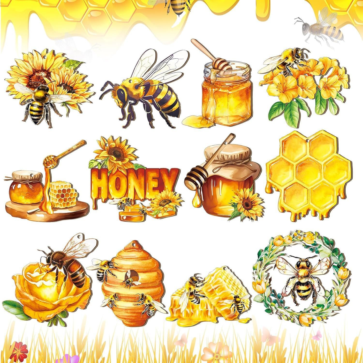 新款木制装饰挂饰,夏季水彩木制吊坠挂饰,蜂蜜黄色蜜蜂礼品装饰品