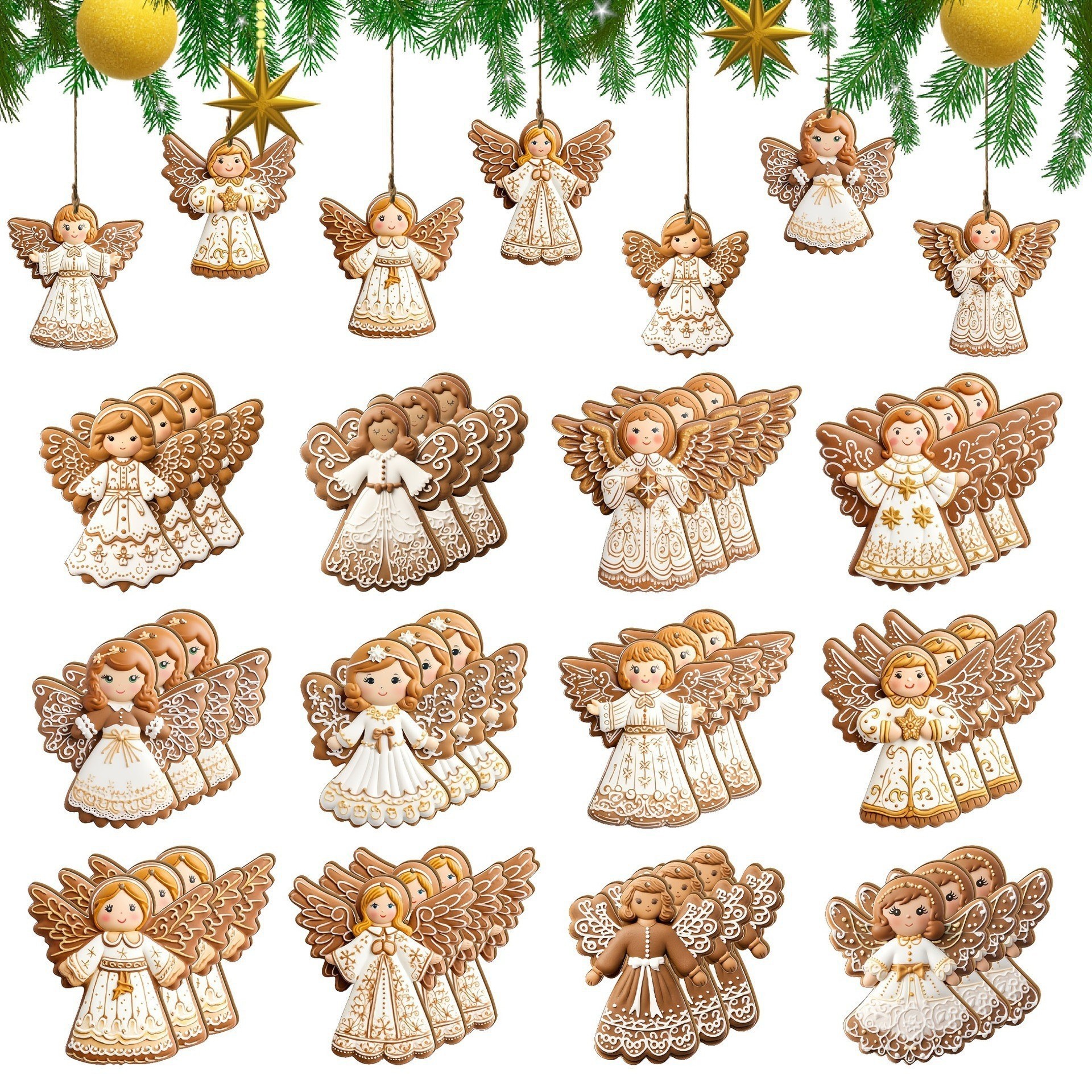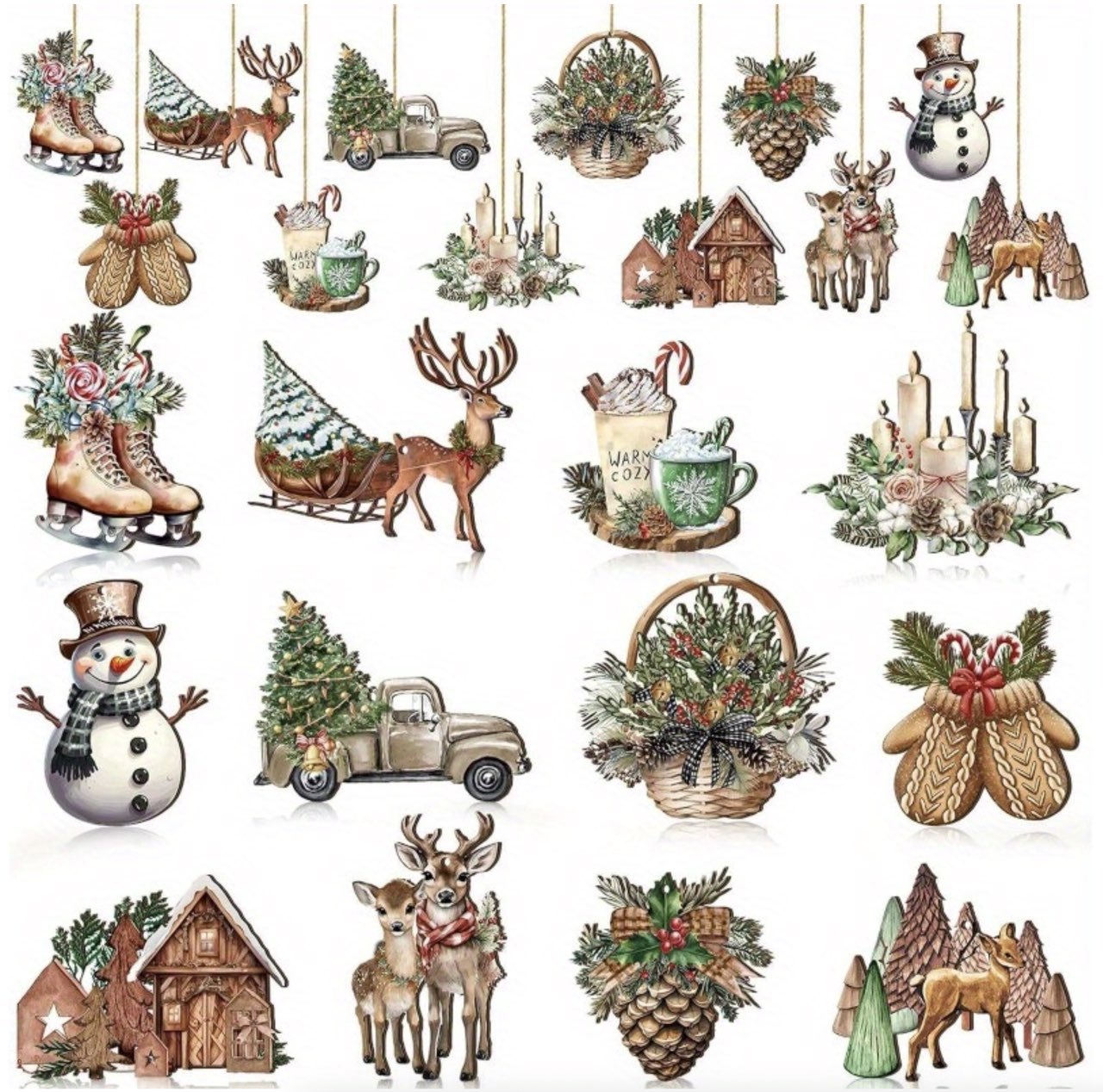 24 件天使圣诞饰品木制圣诞树装饰乡村挂饰农舍天使圣诞装饰品