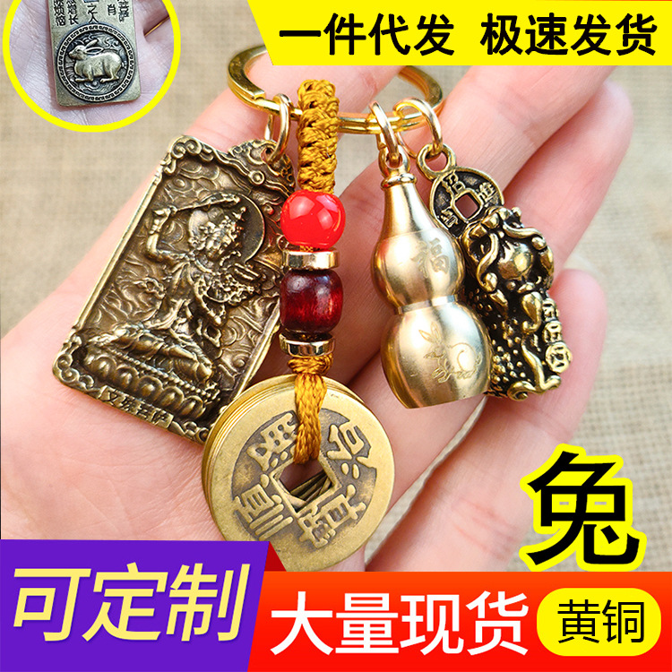 十二生肖福牌五帝钱黄铜葫芦公母貔貅钥匙扣挂件汽车钥匙链配件