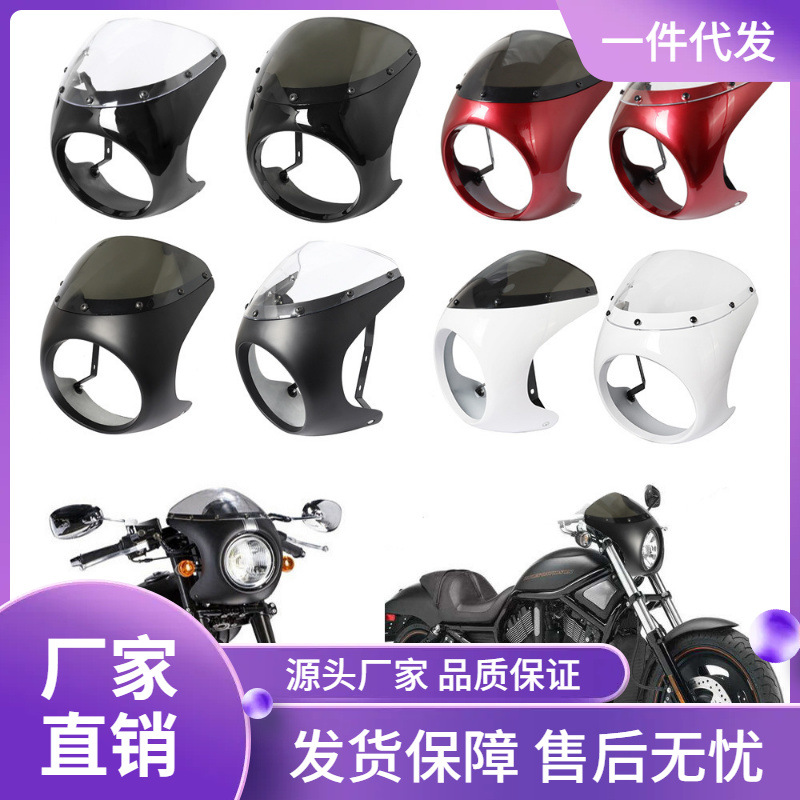 亮黑色复古摩托车改装头罩导流罩大灯罩猪头罩咖