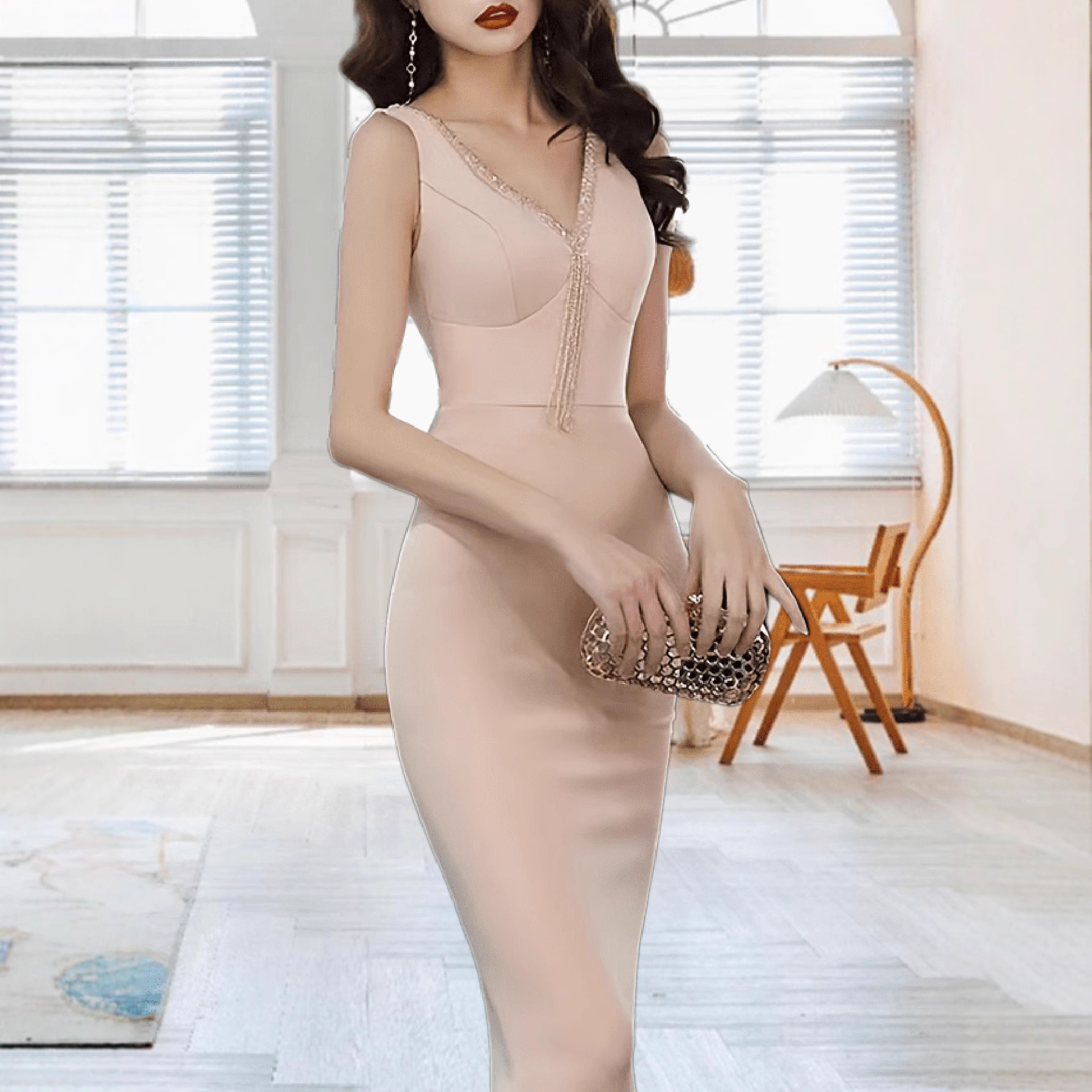 2025名媛高级感纯欲重工钉珠修身显瘦包臀鱼尾礼服吊带连衣裙轻奢