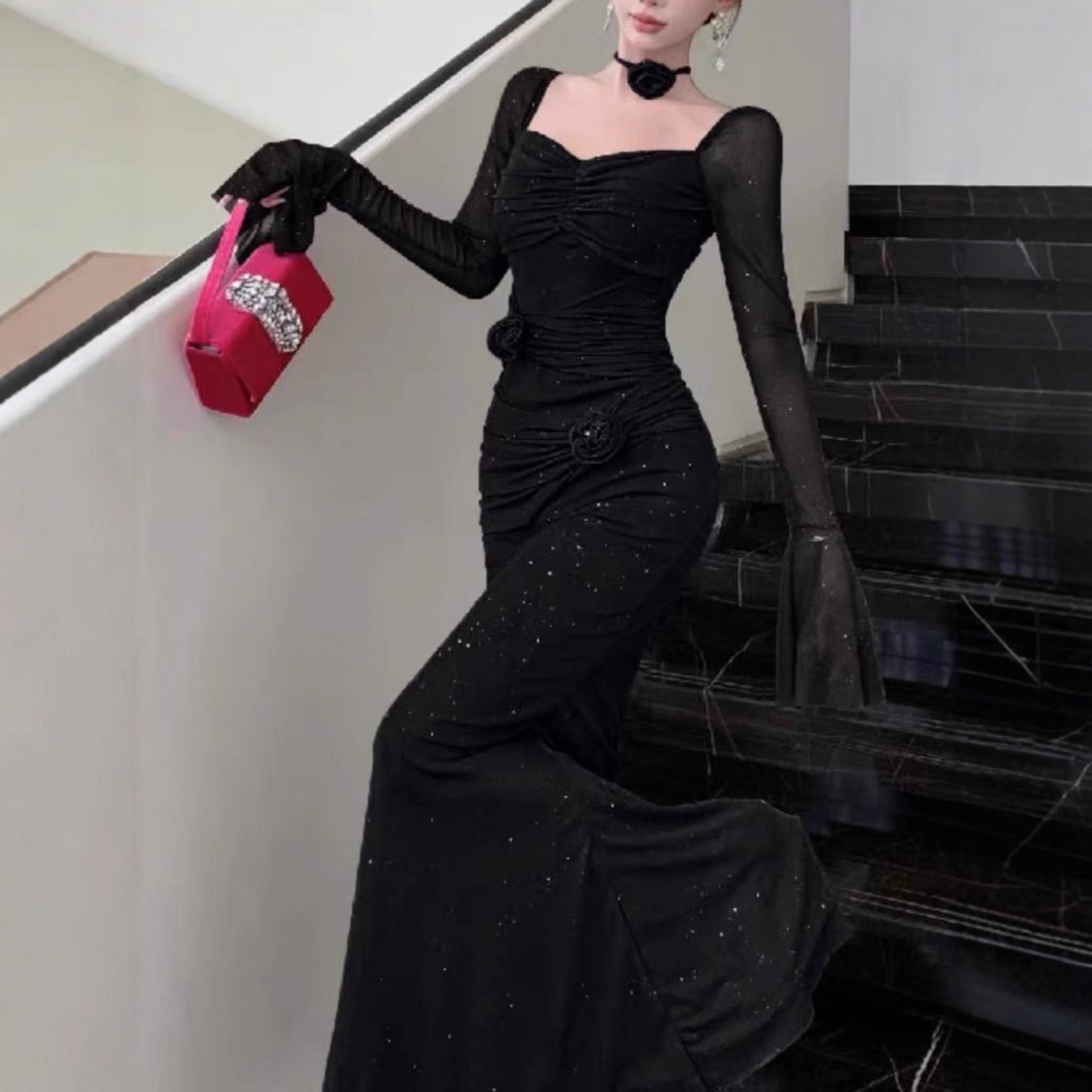 黑色宴会礼服2025新款亚马逊独立站修身晚宴派对跨境批发时尚气质