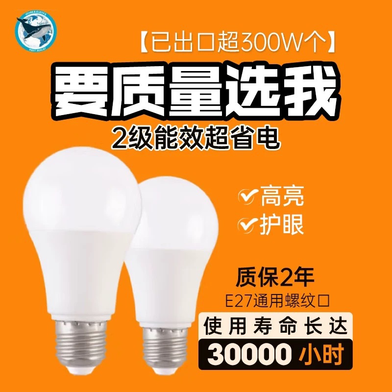 鲸选 工程批发5W-15W护眼led灯泡超高亮无闪频螺口节能灯商用球泡