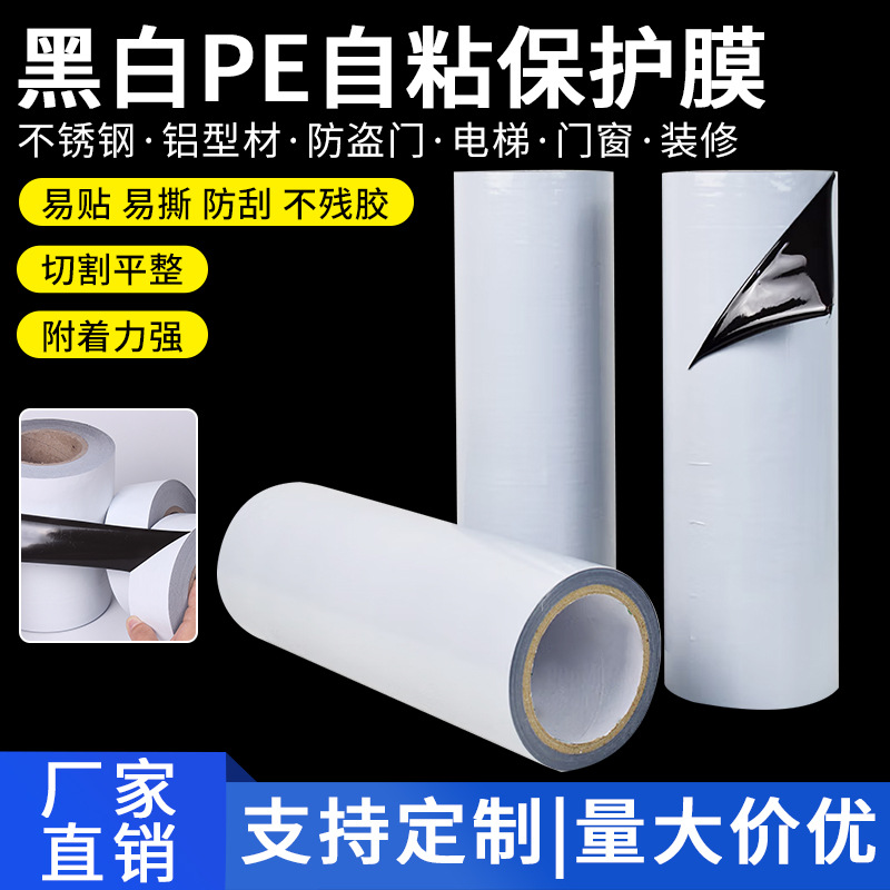 门窗PE白色保护膜高粘黑白铝型材不锈钢板保护膜抗拉伸窗户保护膜