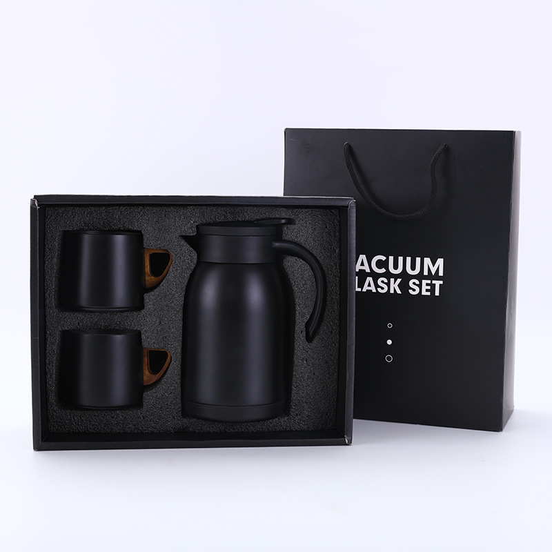 简约304不锈钢保温壶大容量双层真空咖啡壶手柄便携礼品壶套装