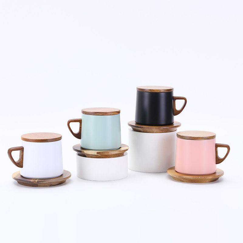 创意304不锈钢双层保温杯手柄便携办公咖啡杯带木盖情侣礼品杯
