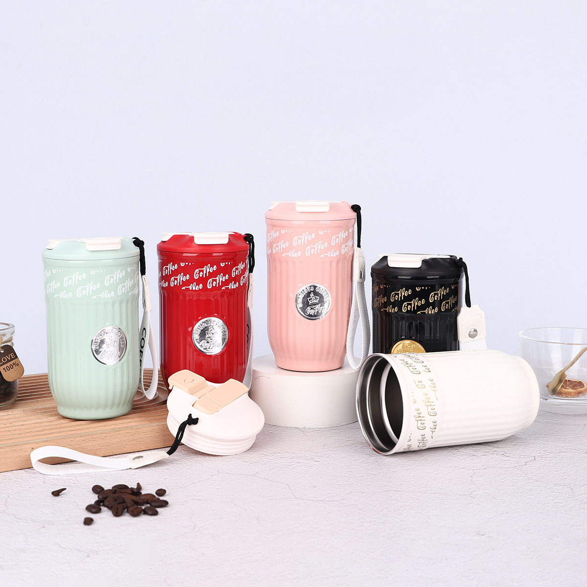 亚马逊创意304不锈钢保温杯大容量真空男女随行杯提绳便携咖啡杯