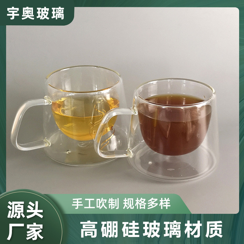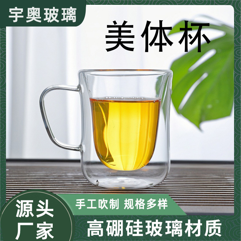 厂家批发双层玻璃杯双层美体杯耐高温透明玻璃杯 带把双层玻璃杯