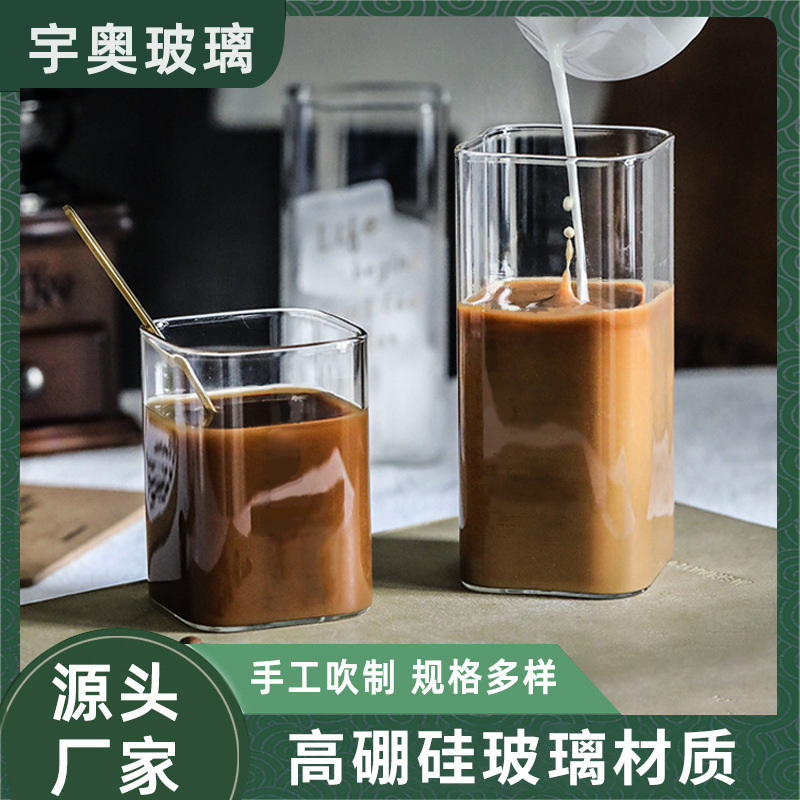 方形杯高硼硅玻璃杯耐冷耐热鸡尾气泡果汁杯方形玻璃杯