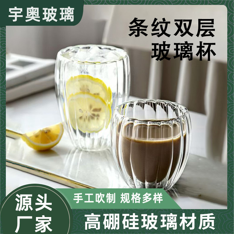 耐高温条纹双层杯隔热玻璃杯高硼硅耐高温隔热防烫水杯双层玻璃杯