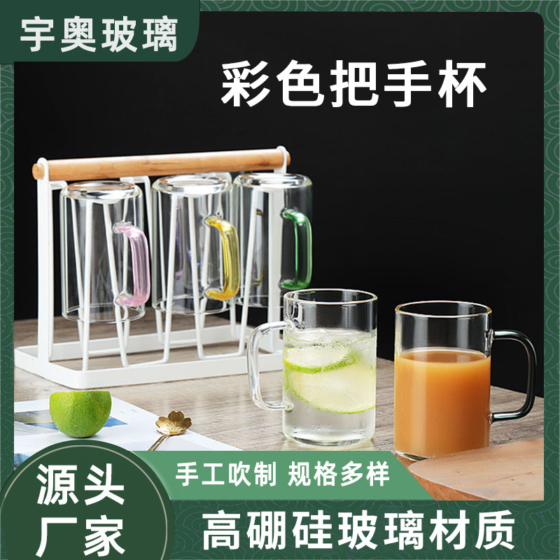 彩色把手杯耐热简约牛奶杯ins喝水杯家用客厅泡茶杯家庭杯子套装